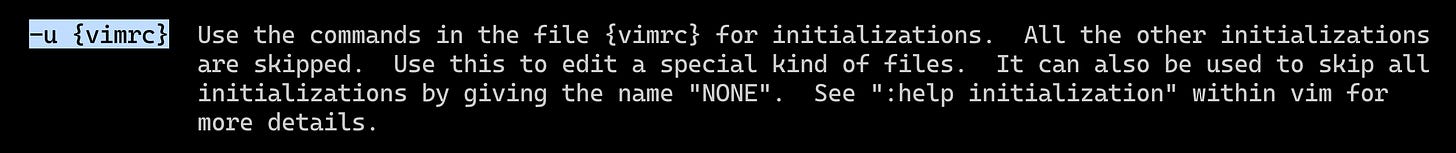 As we can see, we can use option -u when open vim for specify config when open VIM. For example, out configuration file named .awesome_vimrc and when open new VIM, we can use this command :